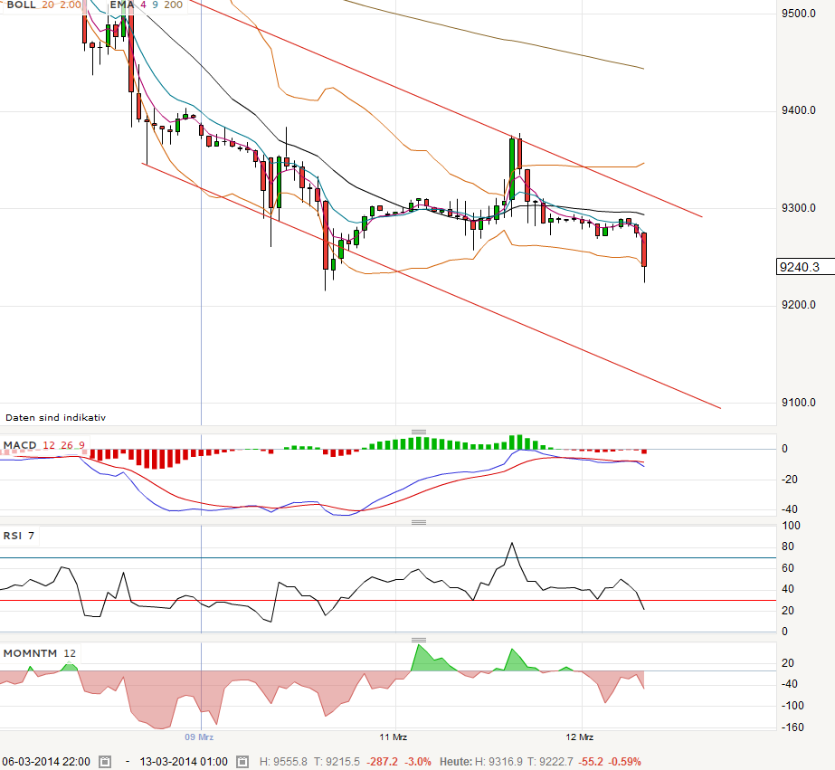 O-Ton der gestrigen Ausgabe zum DAX: „Im Ausschnitt muss der DAX zwingend über 9357 Punkte steigen, ansonsten bleibt es beim Ziel von 9128. Heute besteht eine große Wahrscheinlichkeit zur Ausbildung eines Insidedays – man muss abwarten.“