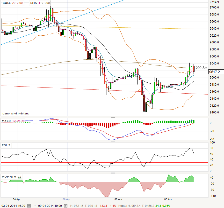 hängen wir gerade genau zwischen 200er ema unten bei ~9500 und 100er Ema bei 540 im 60er Dax.