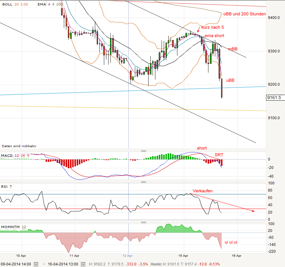 zuerst kommen! Bin erstaunt, dass man als Grund für fallende Kurse die Ukraine nimmt und für steigende die guten Wirtschafftsdaten - auf die Idee einer Überbewertung kommt keiner - übrigens Widerstand bei 9.170/80 gebrochen - nun sollten sich die Bullen beeilen, ansonsten könnte es fürchterlich werden ;-) oder die machen heute kurz vor 22.00 Uhr wieder einen "Zauberspruch" wie gestern - das wäre ober geil!