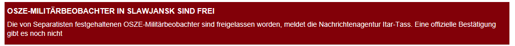 Um auf die Kubakrise zurückzukommen, selbige löste sich seinerzeit "friedlich", die Problematik in der Ukraine wird ebenso nicht zu einem 3. Weltkrieg im militärischen Sinne ausarten - und wohl auch keine ewigwährende Krise darstellen, sei es, daß die Amis eine neue Zielscheibe finden, sei es dadurch bedingt, daß der große Bruder mal auf den Tisch haut und eine "friedenstifende" Regierung installiert... oder sich die Ukraine per Referendum (bzw. mehrer derer) peu a peu Russland anschließen wird...