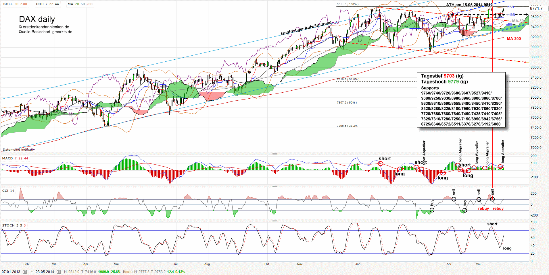 etwas verarscht, aber man kann es drehen wie man will tendentiell ist der Dax longo. Allerletzte Hoffnung der Bären ist am Montag ein Fall auf die 9660 und damit der Rückfall in den Trendkanal. Aber nach dem Ausbruch nach oben sind auch 9900 kein Problem mehr.