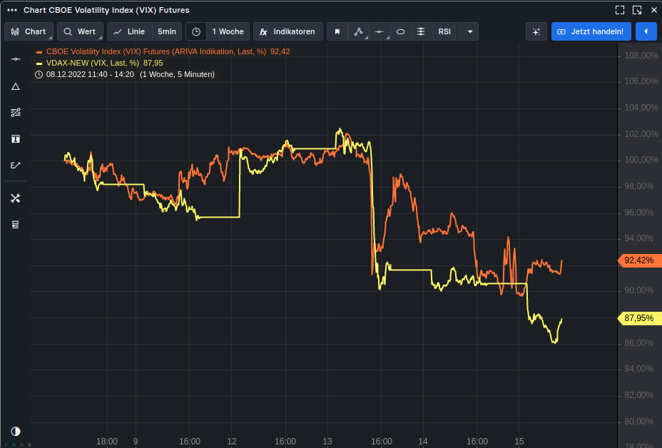 das steht auch im Zusammenhang mit anstehenden Verfall. Jedoch schon krass abweichende Entwicklung. Seit Hoch am 13.Dez fallen VDAX und DAX Fazit: VDAX müsste höher stehen