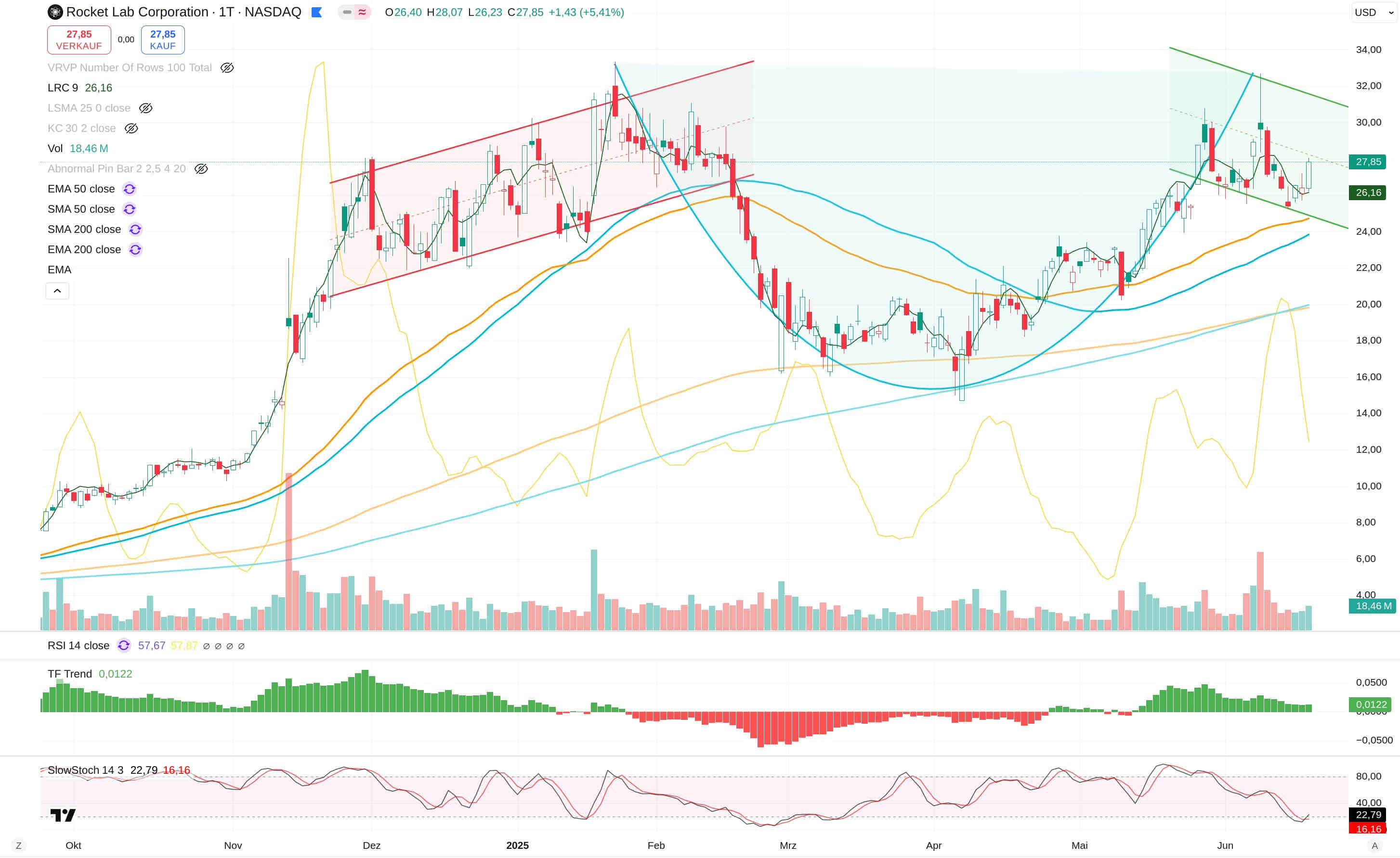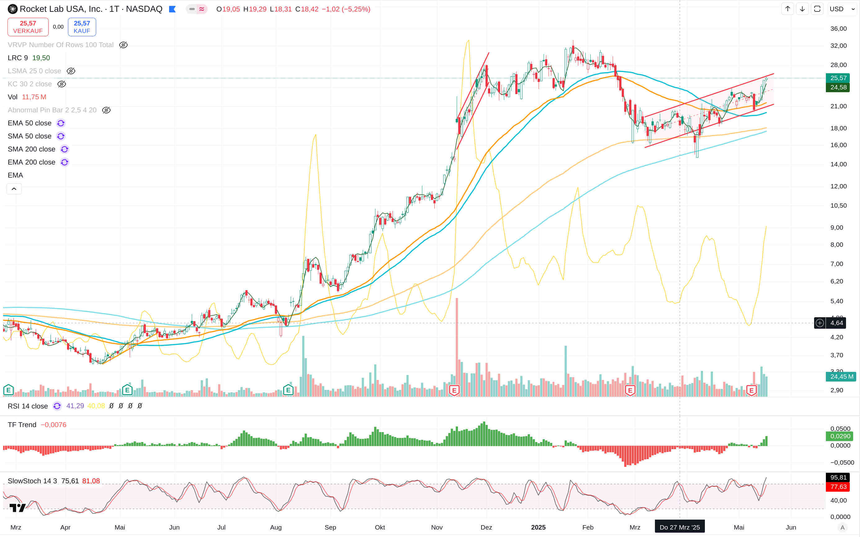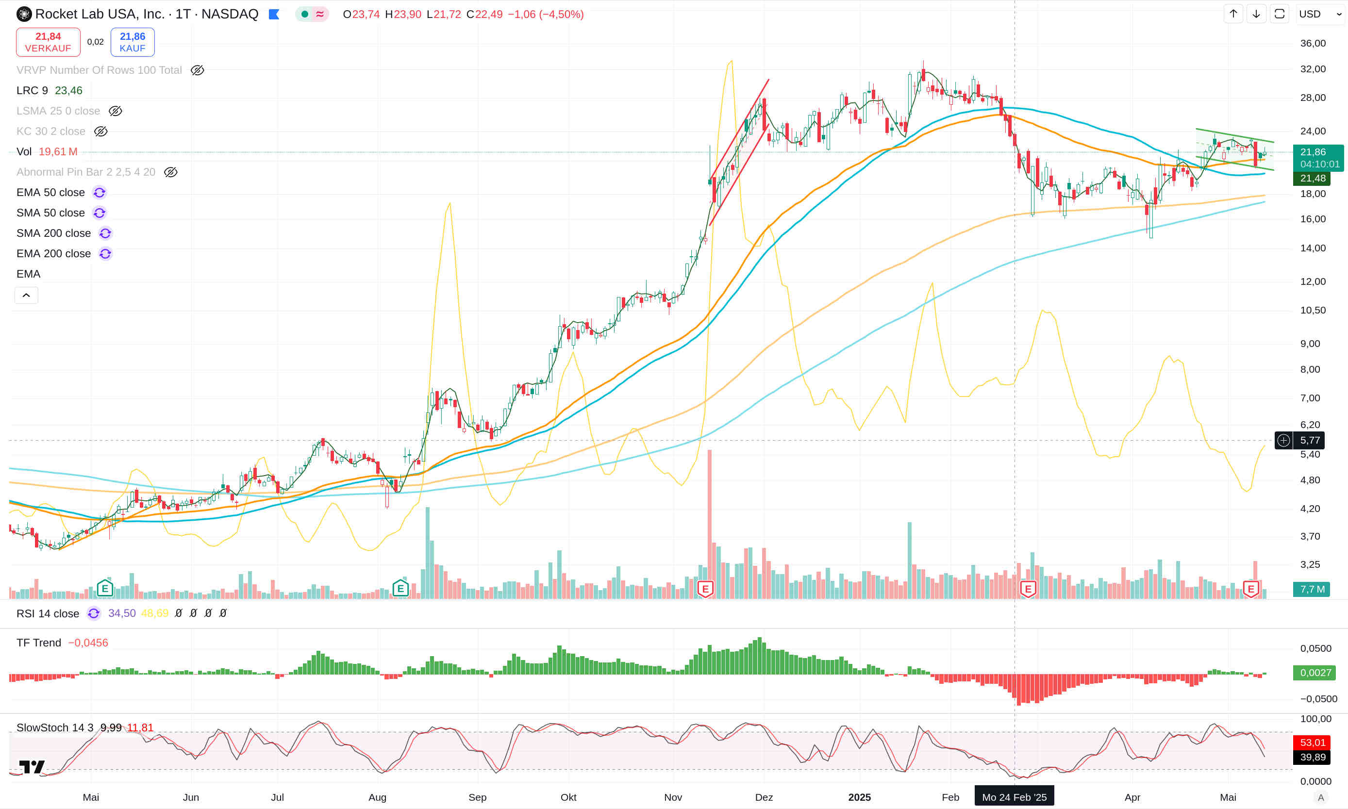 Bei Rocket Lab kann man das ziemlich gut sehen, wie sich die Aufwärtsbewegung seit dem starken Einbruch in ihrer Charakteristik im Vergleich zu den Wochen und Monaten vor dem Einbruch verändert hat.