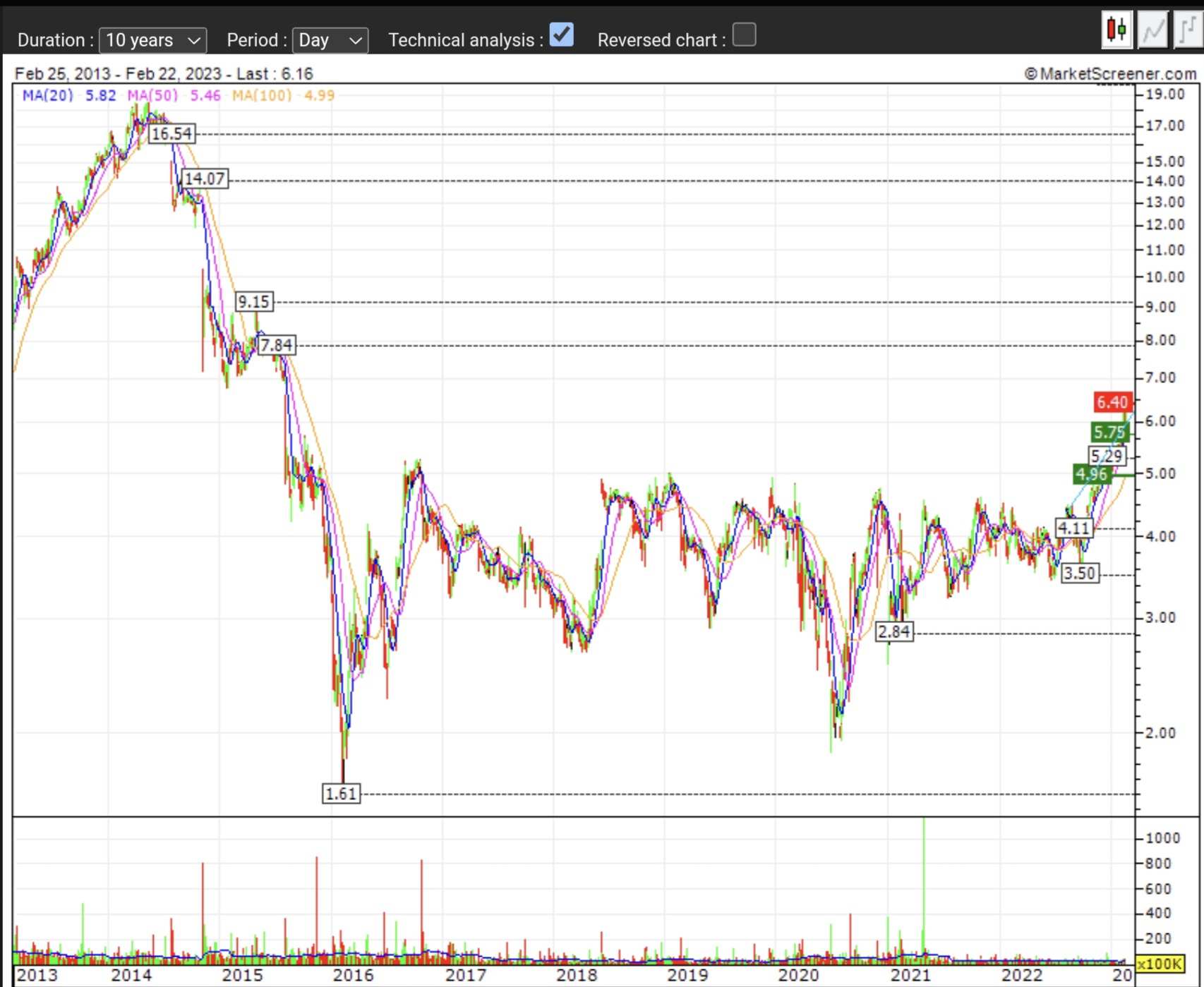 Ich hatte damals eine größere Menge in 3 Tranchen gekauft, weil ich auf einen positiven Ausgang der Mergers gehofft hatte...Das war bekanntermaßen eine Fehleinschätzung.