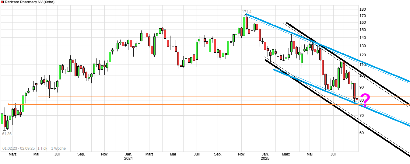Wieso? Man ist doch noch nicht aus dem von mir erwähnten Trendkanal herausgelaufen nach unten. Ob es so bleibt muß sich natürlich weiter erst zeigen. Besonders falls auch die Gesamtbörse im nun beginnenden September nochmal etwas weiter ausatmen würde. Im übrigen bin ich mir fast sicher, daß hier schwerpunktmäßig doch einige Fonds-Manager ihre Position zuletzt reduzierten bzw. ihr Portfolio umbauen, weil zuletzt erkennbar wurde, daß für Online-Apotheken das Markt-/Wettbewerbsumfeld wieder härter werden könnte und damit die Risiken steigen. Bei DocMorris sieht es ja seit Wochen kursmäßig nicht wirklich anderes aus als bei Redcare. Scheint also doch eine Art Branchenproblem ganz allgemein zu sein. Also nicht immer nur glauben alles läge völlig alleine an LV, nur weil einem der Gedanke nicht gefällt es könnten auch "normale " Long-Player auf der Abgabeseite zu finden sein. Natürlich sind LV auch unterwegs. Die können aber auch nur dann verdienen, wenn parallel große Vermögensverwalter, die ein zigfaches an Pulver haben, kein Interesse haben zu den gesunkenen Kursen wieder größer zu kaufen. Und die Fonds-Manager die Milliarden verwalten, richten sich auch nicht nach den Micky Maus Analysen bzw. den KZ die "kostenlos" verteilt werden an die kleinen Mücken. Die agieren nach internem Research der nicht jedem kleinen Michel lautstark vorgesungen wird. Und am Ende macht das große Geld nunmal die Kurse. Solange scheinbar größere Fonds ihr Interesse zuletzt vermindert haben an Aktien von Online-Apotheken, solange kann die Konso noch nicht enden. Ab welchem Punkt die Kurse wieder für die großen Long-Player interessant werden bzw. ab wann genug Risiko wieder eingepreist ist, kann ich nicht abschätzen. Bleibt nur abzuwarten was es für Signale weiter in Zukunft im Chart gibt.
