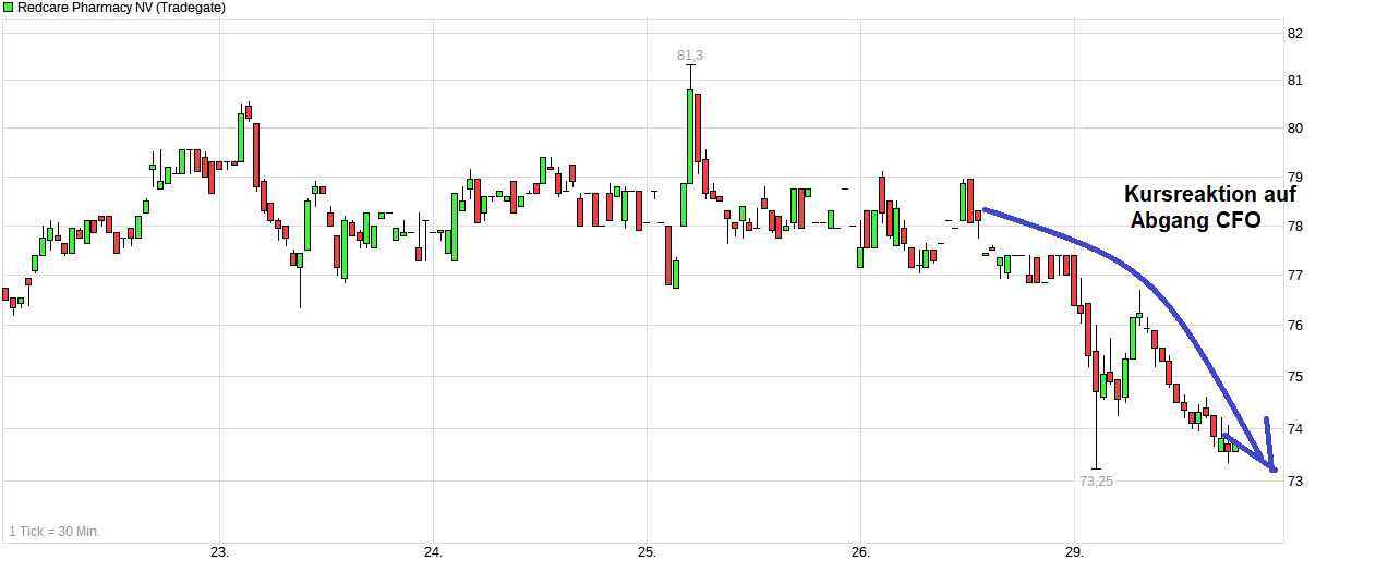 Also wenn der Mann so schnell aus dem Amt ausscheidet, daß man nicht einmal die Vorlaufzeit hatte einen neuen CFO schon anzuwerben für einen sauberen Übergang, dann sieht das schon etwas nach einer Hauruck Aktion aus. Jetzt macht der CEO interimsmäßig auch noch das Amt des CFO mit. Ob da wirklich nur eine "berufliche Veränderung" der Grund ist für den sofortigen Postenabgang oder ob es da intern wegen etwas geknirscht hat? Vorstände haben ja Arbeitsverträge. Da kann doch nicht jeder von heute auf morgen sich einfach wie er lustig ist abseilen und anderswo anheuern. Scheint da hat auch keiner bei Redcare darauf bestanden ihn solange noch im Amt zu binden bis ein neuer CFO übernimmt. Und Dankesworte für die geleistete Arbeit des (ex) CFO gab es in der Mitteilung auch nicht. Das ist bei Abgängen von Vorständen kein gutes Zeichen.