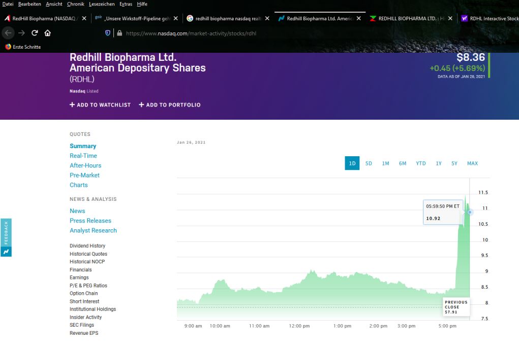 Oh, ich würde mich freuen, wenn endlich mal die shorter hier so richtig überrascht werden. Was wäre das schön, wenn es einen halt an der Nasdaq gibt und dann die Meldung zu einem Emergency Approval durch die FDA bekannt gegeben wird. Da will ich in der ersten Reihe sitzen!