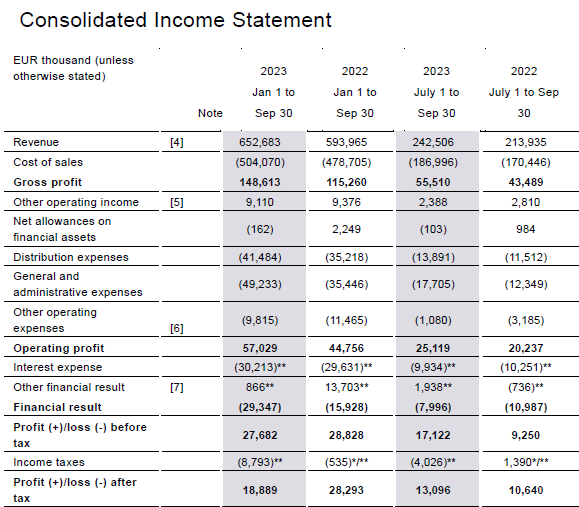 Unten noch die Aktuellen Ergebniszahlen, jeweils auf 9 Monate.