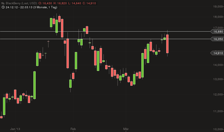 Diverse Upgrades von großen Banken. Gute Starts laut BBRY in allen bisher gelaunchten Händlern. Die schlechten Nachrichten sind 1Monat alt und werden immer wieder aufgerollt.