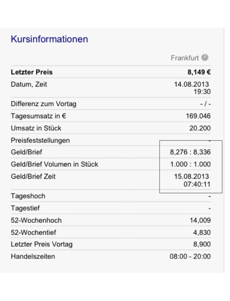 und eingetahmt hatte ich den aktuellen bid ( der inzwischen auch gestiegen ist....) um 8 Uhr startet frankfurt