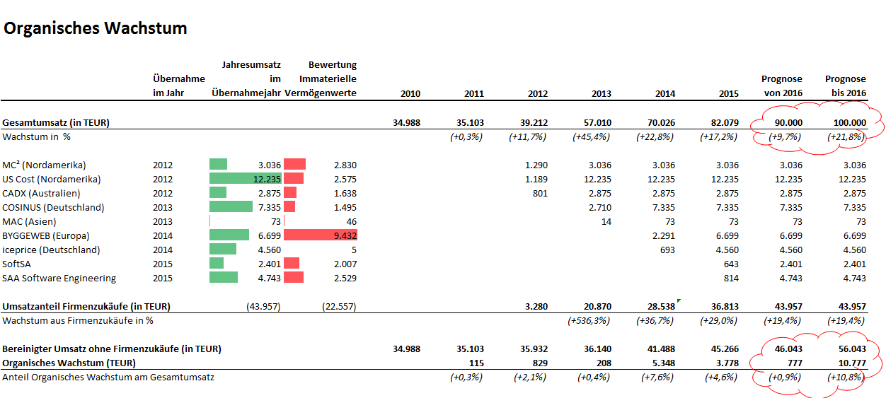 RIB plant mit sehr positiven umschriebenen Aussichten einen Umsatz für 2016 von 90 bis 100 Mio. Dies entspricht aber lediglich einem organischen Wachstum in Höhe von +0,7 bis +10,7 Mio. Umsatz.
