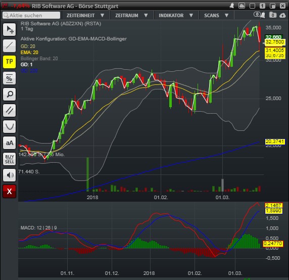 Aber: schadet Mr. Donald RIB? Zunächst laufen die Steuern ja gegen Stahl und Aluminium. Da ist RIB direkt nicht betroffen, es sei denn natürlich, das schlägt sich auf die Baubranche nieder. Die Hauptlieferanten Mexiko und Kanada sind aber schon mal von den Schutzzöllen ausgenommen. Fraglich natürlich, was passiert, wenn sich die Geschichte zu einem veritablen Handelskrieg ausweitet. Wie trifft das ein Softwareunternehmen? Kann ich schlecht was zu sagen. Aber durch die Kooperation mit Microsoft möchte ich annehmen, dass RIB da einen Fuß in der Tür hat, was den Effekt womöglich abmildert.