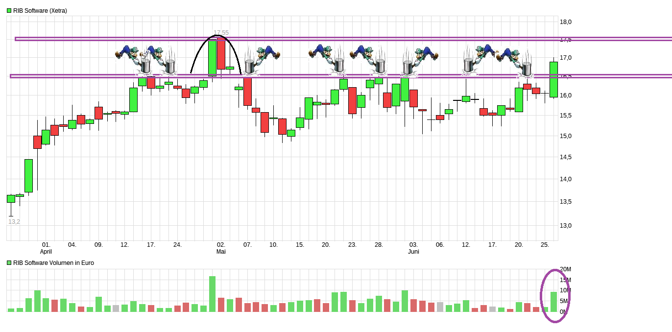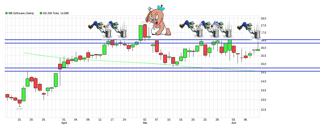 Aufträge sind immer willkommen. Letztes Jahr hatte man Mitte Juni glaube ich 9 PII gehabt. Von daher hat man jetzt 1 PII mehr. Ist aber auch nicht die Welt an Unterschied und pendelt sowieso unregelmäßig über das Jahr hinweg. Allerdings sind PII inzwischen ohnehin schon eher Alltagsmeldungen, die über das Jahr ständig reinflattern (müssen) , d.h. quasi das Normalgeschäft sind. Entsprechend sagen solche Einzelmeldungen isoliert nicht viel darüber aus wie es wirklich genau läuft. Denn zum einen ist die Spanne für PII sehr weit gefaßt (0,5 Mio bis 5 Mio Umsatz) und zum anderen ist das größte Problem aus meiner Sicht weiter die magere Marge bei RIB und niemand kann abschätzen, ob solche Aufträge die nötige Margenerhöhung bringen oder ob man weiter bereit ist eher Umsatzsteigerung vor Margenverbesserung zu forcieren. Was mal gerne öfter noch kommen dürfte wären PIII Meldungen im Hj.2. Und mal als Beispiel: 10 PII Aufträge die jeweils 505.000 Umsatzumfang haben sind kaum mehr wert als ein einziger PII Auftrag, der 4,999 Mio Umsatz generiert. Die nackte Anzahl an PII Meldungen sagt also NICHTS aus solange man nicht die zuhörigen Umsätze auch kennt. Also muß man abwarten was wieder bei den Hj.1 Zahlen verkündet wird was wirklich so läuft und ob die Prognose so bleibt oder geändert/angehoben werden kann. Und der altbekannte Deckelwächter ist wieder heute im Bereich 16,50 aktiv geworden. Einmal hatte er ja gepennt Ende April. Da mußte er die nächsten Tage danach dann heftig den Druck wieder forcieren, damit man wieder schnell unter die 16,50 zurückkehrte. Also bleibt nur abzuwarten bis der Deckel mal nachhaltig weggenommen wird. Oder man alternativ aus der Seitwärtsrange nach unten rausfällt ( < 14,50), was natürlich nicht wünschenswert ist.