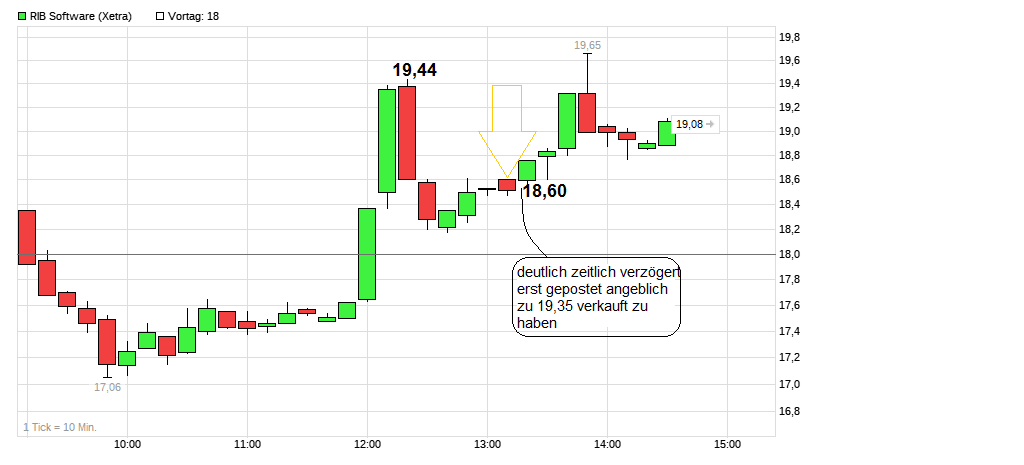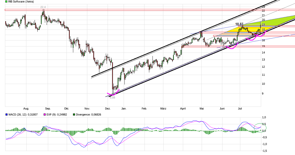 So unschön die erste Reaktion heute war ( da hatte offenbar mancher Anleger für Q.2 mehr erwartet und nicht sofort wahrgenommen, daß durch den starken Start in Q.3 es ja schon mehr als ausgeglichen wurde und das 2. Hj. deutlich besser wird), so schön ist das starke intraday-Reversal bislang. Damit hat RIB ein neues Mehrmonatshoch gemacht in einem Umfeld wo der DAX z.B. deutlich vom Jahreshoch jüngst wieder zurückkommt. Man kam heute zwar wieder in die Nähe des seit Dez.18 steigenden Aufwärtstrends, aber es haben im richtigen Augenblick dann doch starke Hände den Kurs wieder angeschoben, d.h. es gab z.B. keine starken Leerverkäufer, die diese Gelegenheit nutzen konnten zum Break ( was dann ein Verkaufssignal wäre). Solange also der Trend weiter aufwärts intakt bleibt, scheint die Lage noch freundlich zu bleiben und eine V-förmige Erholung möglich in Richtung der Region wo man Ende August 2018 in den Sinkflug ging (zusammen mit dem Gesamtmarkt) . Muß man mal abwarten, ob es sogar gelingt nun auch das Top von Anfang Juli (18,87) auf SK rauszunehmen. Denke bei RIB ist also die Lage selber fundamentel weiter o.k. , aber es besteht halt wie immer das Gesamtmarktrisiko, wo z.B. negative Reaktionen auf eine nicht genug liefernde FED oder Dinge wie eine neue Verschärfung Zollkrieg USA/China auch noch RIB ins Schlepptau/Sippenhaft nehmen könnte und man dann vielleicht doch in einen etwas weniger dynamischen Trendkanal mal wieder abkippt. Also mal abwarten wie die Märkte jetzt die FED Entscheidung aufnehmen werden.