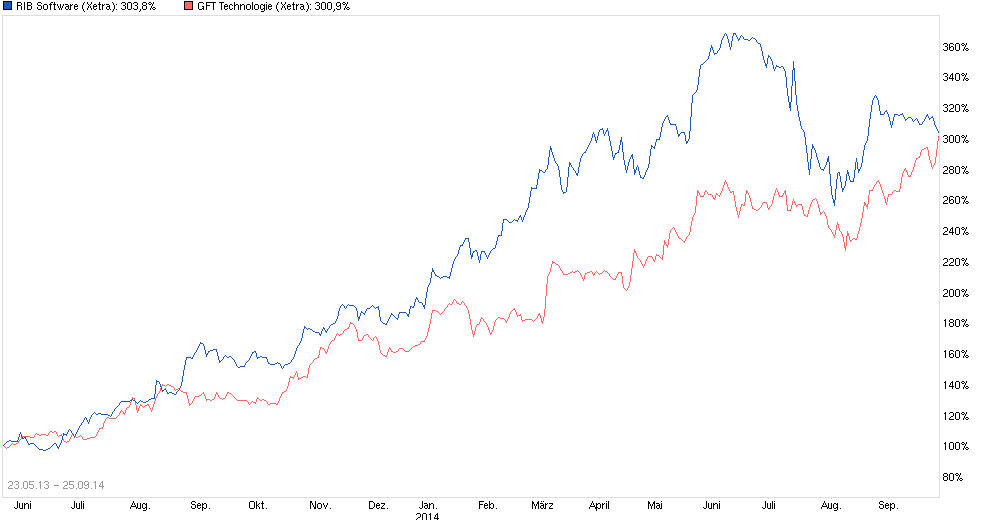 was deine Frage nach der Rechtfertigung höherer Kurse angeht. Guck dir mal andere TecDax Werte wie Xing, Wirecard etc. an! Die sind unter Berücksichtigung der Nettoverschuldung bzw. Nettocashbposition höher bewertet als RIB, obwohl RIB deutlich stärker wächst.