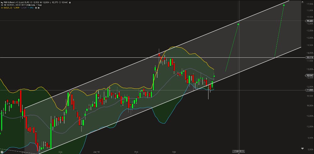 ABER: ich sehe dein Szenario nur dann als realistisch an, wenn alles super ist! Klartext: Der Markt (TECDAX) müsste in den kommenden 2 Monaten leicht weiter steigt. Es dürfte defintiv zu keinerlei Konsolidierung kommen. RIB ist zweifelsfrei stark...aber kein Outperformer, der im Moment den Gesamtmarkt so deutlich schlagen würde! Die zahlen waren gut, aber sie wurden eben auch zumindest weitestgehend so gut erwartet. Hinzu müssten die Leerverkäufer ihre Positionen weiter abbauen! Wenn dann am 30.04. noch super Q1-Zahlen kommen (mit ausgewiesenen Bahnauftrag und vllt noch zusätzlich ein Phase III)...dann (UND NUR DANN!) sehe ich dein Chartbild als realistisch an und wir könnten wirklich neue Allzeithochs um 16-17€ in Angriff nehmen.