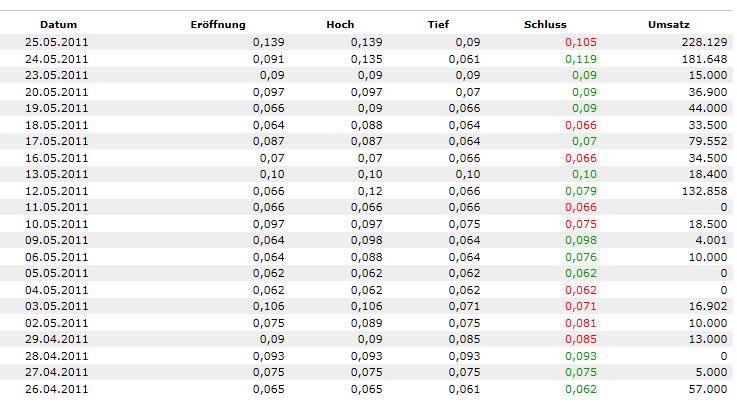 @hardcorezocker - 270 Euronen (obwohl ja mittlerweile "schon" fast verdreifacht mit 754,-- Eus) ist nix. ABER: Schau Dir die oben eingefügte Grafik an: Am 24.05. waren es 181 k, am 25.05. schon über 228.000 gedealte Aktien. Interesse ist da, steigt, wird jetzt hoffentlich bestätigt und der Kurs sollte dann so nach und nach den richtigen Weg finden.