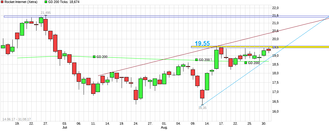 nachhaltig zu knacken. Mal abwarten, ob die noch aufkommt in der nächsten Zeit. Zumindest hält man sich inzwischen wieder über der 200 Tagelinie. Man ist jetzt wieder in der Kursregion, wo Kinnevik zweimal seine Stücke bei instit. Investoren untergebracht hat. Von daher müßte dieser instit.. Kundschaft daran gelegen sein, daß die Stücke auch mal wieder über den Kaufpreis kommen. Können ja gerne nochmal nachkaufen und damit einen Impuls auslösen ;) Auf der anderen Seite zeigten die Auktionspreise die Kinnevik damals bekommen hat, daß viele instit. Investoren hier auch keine überhohen Preise bereit sind zu zahlen jenseits der 20€ Marke. vielleicht auch einer der Gründe warum man sich jetzt in dem Bereich erstmal etwas schwer tut. Zumal der ausstehende Hello Fesh IPO angesichts der Blue Apron Geschichte etwas die Sorge aufkommen läßt, daß man hier keinen so hohen IPO Ausgabepreis bekommen wird.