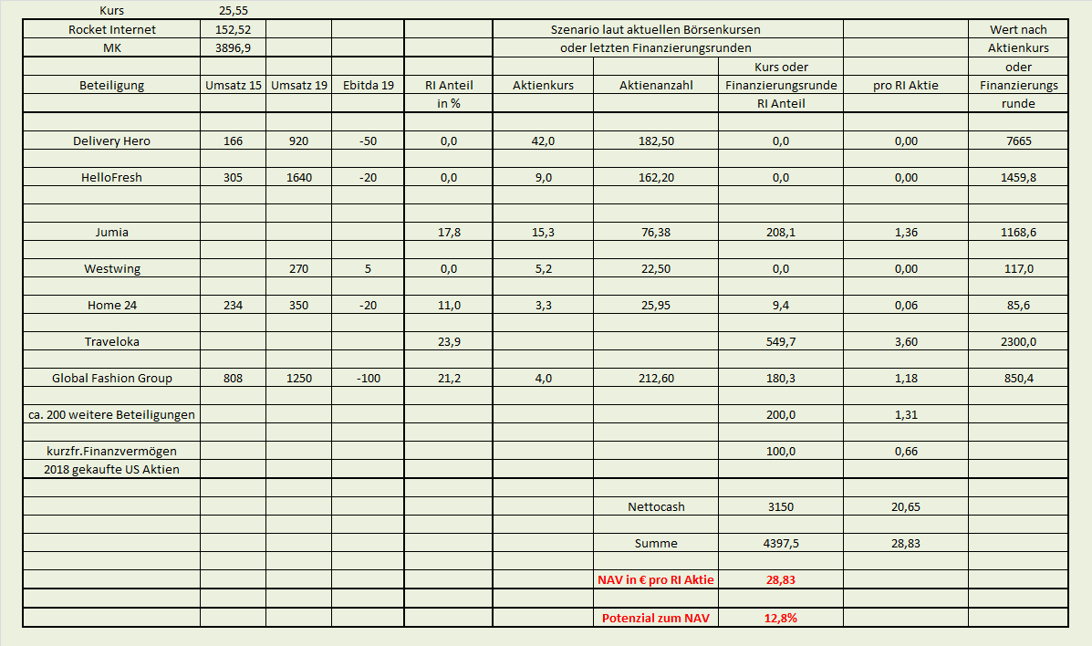 Da aber niemand genau weiß, ob das jetzt in Form eines Rückkaufsangebotes mit einem Preis deutlich oberhalb des aktuellen Kurses vonstatten geht oder nicht und man auf der anderen Seite aufgrund des hohen Cashbestandes von € 21 pro Aktie so sicher liegt wie in Abrahams Schoß, regiert hier aktuell der Stillstand. Persönlich bin ich von einem Angebot von € 30 pro Aktie überzeugt, da Berenberg als Haus- und Hofbank diesen Preis in in der letzten Analyse genannt hat. Und die dürften meiner Meinung nach sehr gut informiert sein, was bei Rocket abgeht.