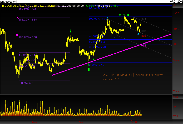 wir sind inner laufenden iii "up" , ihr min.ziel hat sie bereits erfüllt, nur reicht es bei der gier nach gold? dann könnte man das letzte tief schon als iv "down" ansehen... ist aber sehr knapp da das ganze szenario zerstört sein würde laufen wir unter das high der i