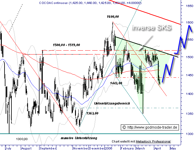 Weizen startete mittlerweile eine Korrekturbewegung, um die Kursgewinne der letzten Wochen zu verarbeiten. Obwohl die langfristigen Fundamentaldaten äußerst bullisch sind, befindet sich der Markt momentan in einer stark überkauften Situation. Außerdem haben viele Spekulanten in den vergangenen Handelswochen Longpositionen aufgrund der enormen Trockenheit in den Plains eröffnet, weswegen ein ausgeprägter Wettermarkt entstand. Jedoch wird sich die Lage während der nächsten Tage in diesem Anbaugebiet etwas entspannen, da weitverbreitete Regenfälle erwartet werden.