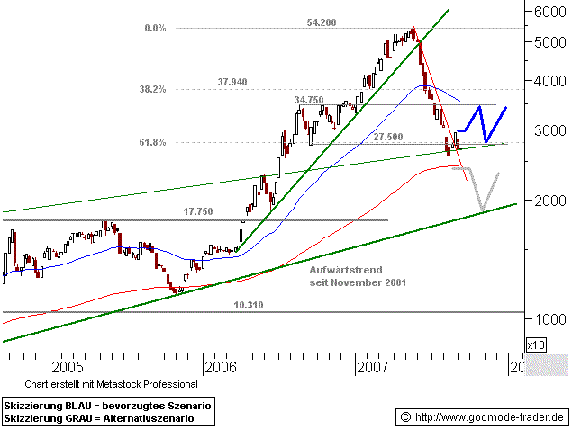 Es sollte sich, nach den stark steigenden Kursen bis zum Jahr 2006, ein Zwischentief bei 50,17 entwickeln.