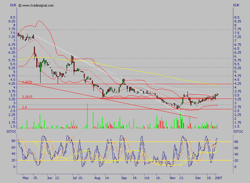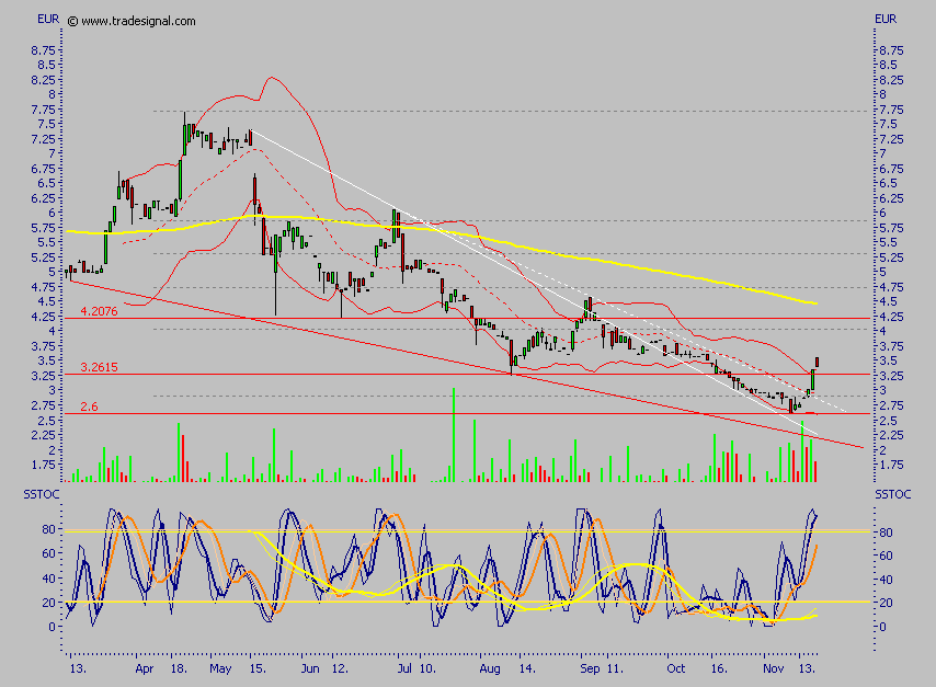 zum "guten Schluß" stelle ich noch einen Chart ein, der ausschließlich darlegen soll, daß die Aktie bei kleinstem Volumen stark überverkauft ist, ansonsten lässt sich der Chart aufgrund des geringen Volumens nur schwer analysieren. Heute wurde am Top geschlossen!
