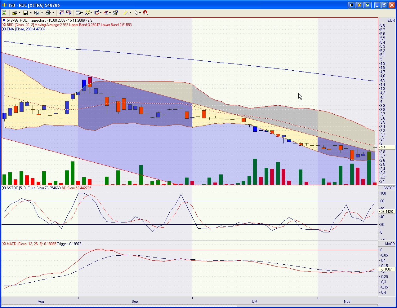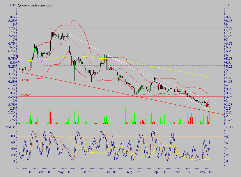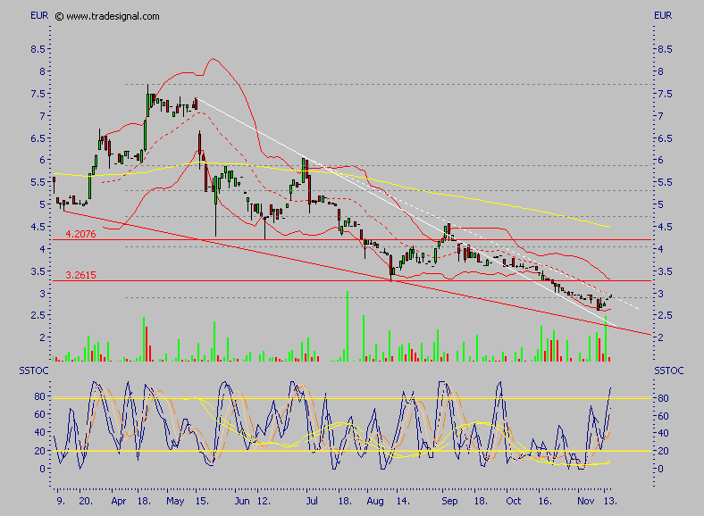 zum "guten Schluß" stelle ich noch einen Chart ein, der ausschließlich darlegen soll, daß die Aktie bei kleinstem Volumen stark überverkauft ist, ansonsten lässt sich der Chart aufgrund des geringen Volumens nur schwer analysieren. Heute wurde am Top geschlossen!