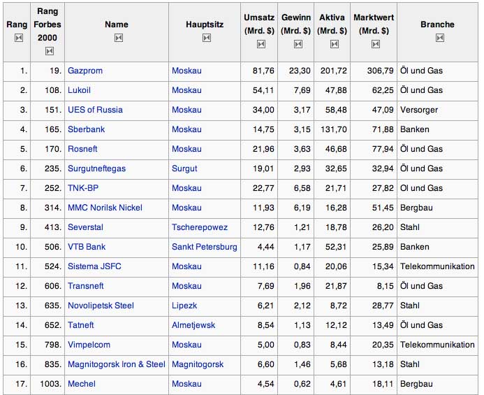 Mit dem so erneuerten Instrument Gazprom ging Putin gegen den Medien-Oligarchen Gussinski und die graue Eminenz der Jelzin-Zeit Beresowski vor, die beide das Land verließen. Wendepunkt im Kampf um den Zugriff auf die Ressourcen wurde der Prozess gegen Michail Chodorkowski im Jahre 2004. Als die Prozesse gegen Chodorkowski begannen, hatte Yukos seinen Firmensitz in New York und Chodorkowski war drauf und dran große Anteile seines Imperiums an die US-Öl-Multis Chevron, Exxon, Texaco US-Kapital zu verkaufen.[28] Die Auseinandersetzung endete mit der Eingliederung des Öl-Konzerns Sibneft in den Gazpromverband. Damit war die (Wieder)Zusammenführung von Gas- und Öl-Industrie eingeleitet.