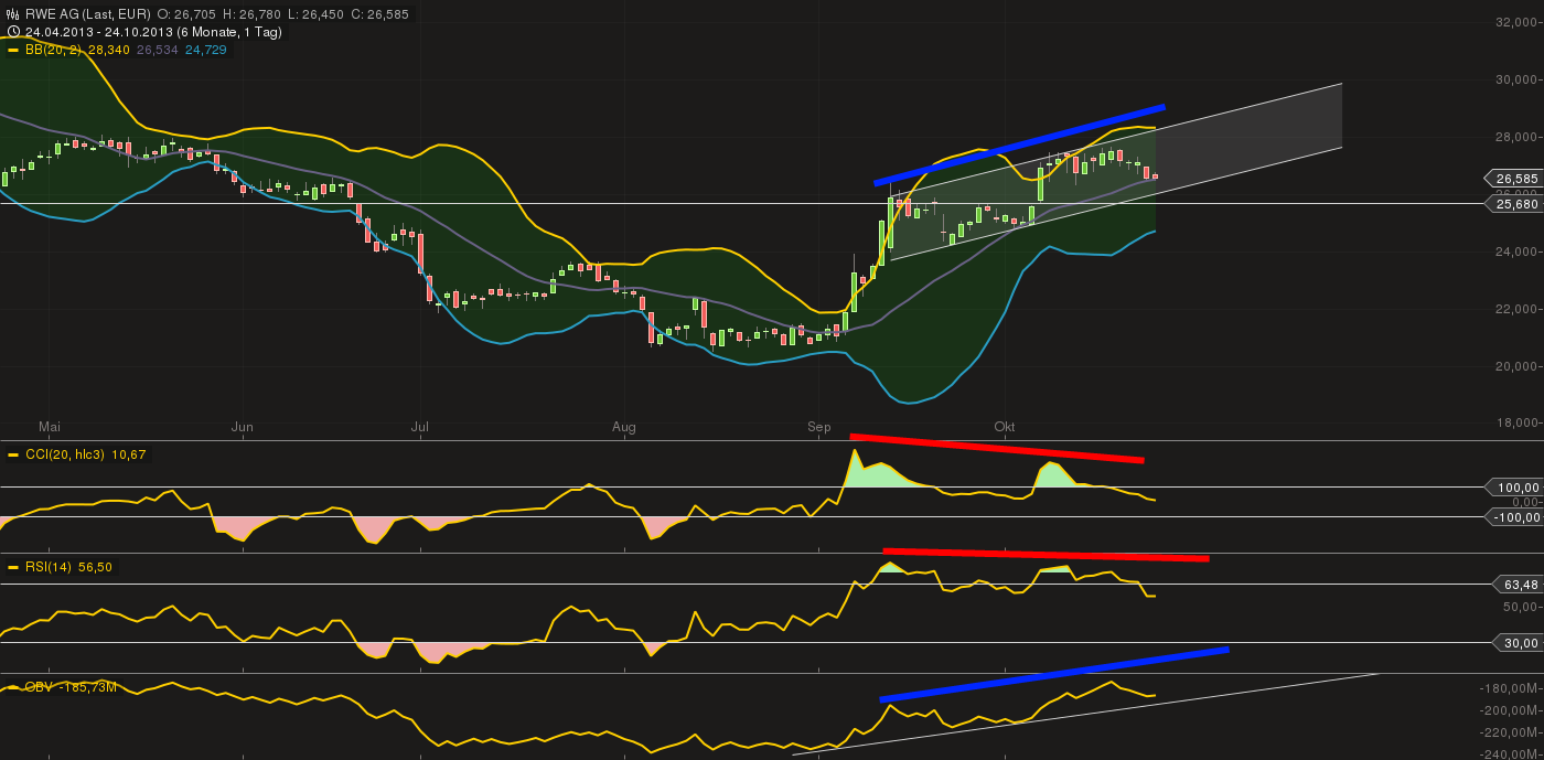 Nur gibt es seit paar Wochen negative Divergenzen zu RSI und MACD......vielleicht gibt es noch Impulse nach oben ...aber nachhaltig scheint der Anstieg im Moment nicht zu sein....Gefährlich wird es, wenn OBV gebrochen wird....denn dann geht es richtig abwärts...