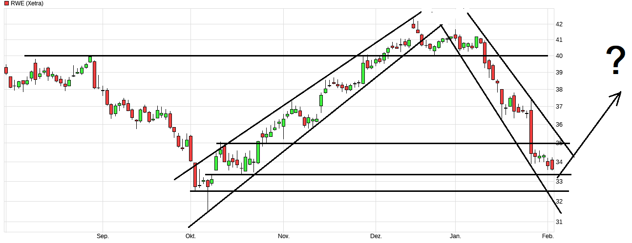 Die BaFin wurde über einen Insidertrade bei RWE am 02.02.2024 informiert. Der Handel wurde am 02.02.2024 öffentlich gemacht. 2.000 RWE-Aktien für jeweils 33,85 EUR kaufte am 02.02.2024 Müller, Dr. Michael, Vorstand. Die RWE-Aktie notierte an diesem Tag im FSE-Handel in Rot und verlor 2,10 Prozent auf 33,59 EUR.
