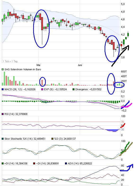 Beispielsweise sieht man das am Chart der Fahrstuhlaktie Nordex: hier im Bild begann der ADX erst dann wieder leicht zu steigen, als die 200-Tage-Linie überwunden war (kommt aber natürlich drauf an wie entschlossen oder zögerlich sich Di+ jeweils entwickelt, davon stammt der Wert ja ab).