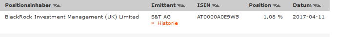 dies ist umso verwunderlicher, da ja die Kurssteigerung bei S&T die letzten wochen sehr positiv war.