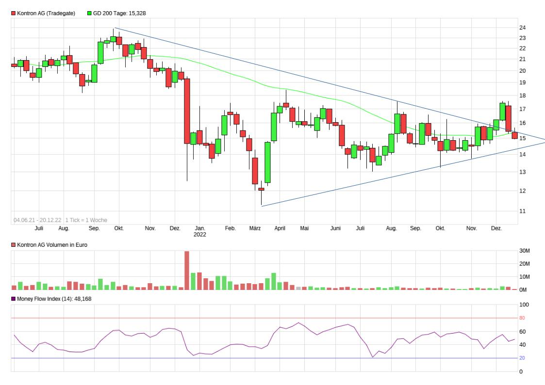 Meiner Einschätzung nach hat die Charttechnik bei der Kontron Aktie durchaus einen gewissen Einfluss. Es sind also genug Zocker an Bord, die teilweise gar nicht wissen, was Kontron denn eigentlich macht. Und die bewegen den Kurs dann auf der kurzfristigen Zeitebene.