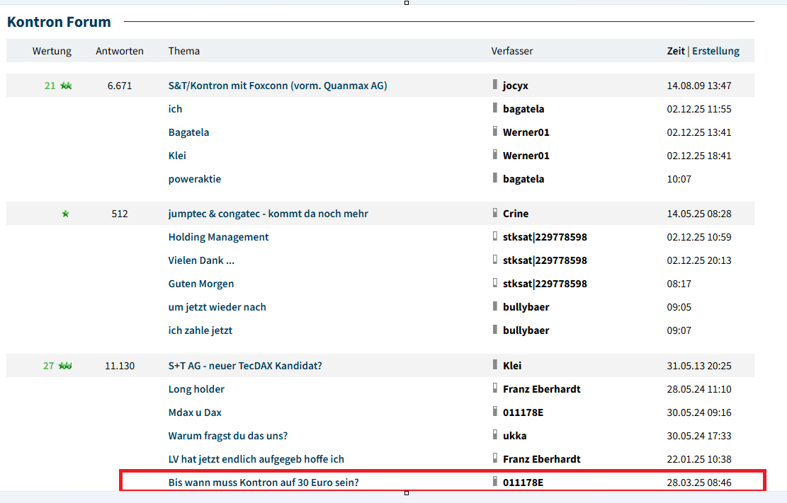 | 21 | 6.683 | S&T/Kontron mit Foxconn (vorm. Quanmax AG) | jocyx | bullybaer | 04.12.25 23:45 | |