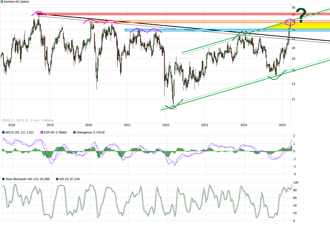 Das ist alles "Spinnkram" werden die Skeptiker sagen, aber die Fundamentalisten sehen 33,5€ auch als fundamental gerechtfertigt an. Beide Lager können sich auf höhere Kurse freuen, aber nur wenn es so Läuft! Die Charttechnik sagt nur, dass es wahrscheinlich ist, die Fundamentalisten: "wenn nichts dazwischen kommt".