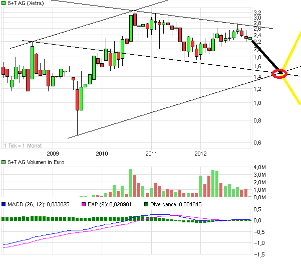 Wie gesagt, bei S&T spreche ich ja nicht von Totalverlust. Aktuell hat sich die Aufwärtsdynamik in meinen Augen eben sehr abgeflacht. Ich habe meine wichtigen Marken genannt, erst wenn die o. g. niedrigste Marke nicht hält, wirds wirklich brenzlig. Dann nämlich spricht alles für einen kräftigen Rutsch Richtung: 1,30 - glaube aber das zuminstes die 1,95 halten wird....
