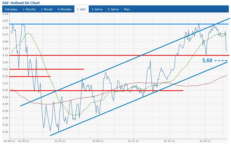 Ich meinerseits freu mich heute über so schöne Wieder-Einstiegskurs. Bei einem KGV von heute 8,3 auf Basis des 2012er-EPS kann man sich nur die Hände reiben (ganz zu schweigen von dem glänzenden Cashflow von SAF). Auch charttechnisch sind das prima Kaufkurse. Und je tiefer es geht, desto höher später die Gewinne... :-)