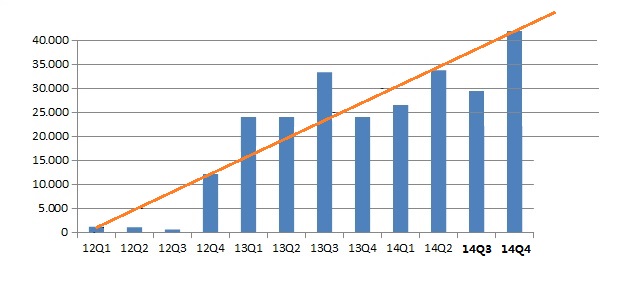- Im Markt platzierte Devices: ca. 14.000 (2013e) und Steigerung auf >100.000 (2017e)