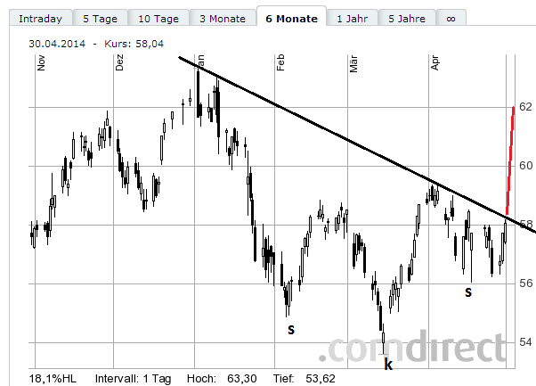 Alles unter 57 sind Kaufkurse für mich. Okay die 1750 Kontrakte im FDAX um 10:30 hatte geholfen zu 56,20 ein paar falls zu bekommen und gerade versilbert