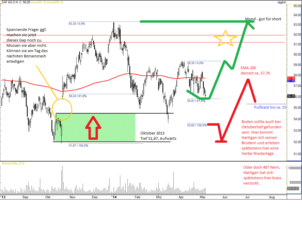 Hab mir den Chart nochmal angesehen, bei ca. 55 verläuft der Aufwärtstrend seit letzten Oktober. Reißt diese Linie, wir ein sehr starkes Verkaufssignal ausgelöst. Denkst dran in 2 Wochen werden 1 Euro dividende ausbezahlt. Sollte die Aktie an diesem Tag unter 54 eröffnen, gute Nacht Sap...