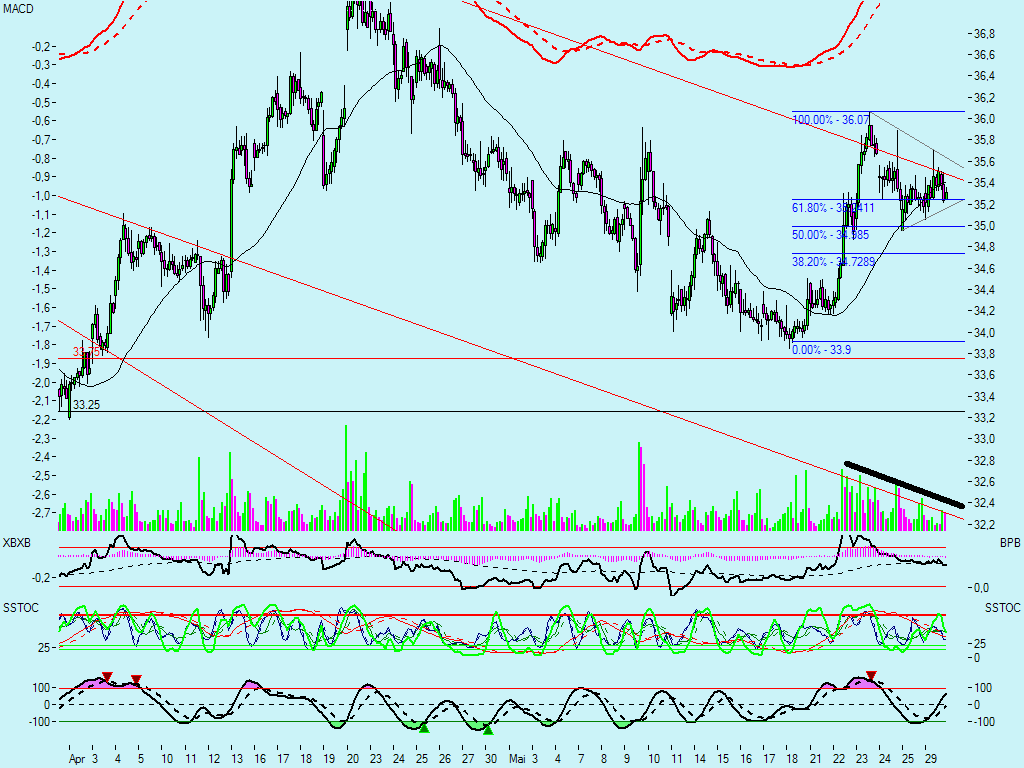 Kurz und bündig, wichtig wäre über 36 zu schliessen damit Potential bis erst einmal über 37 besteht.