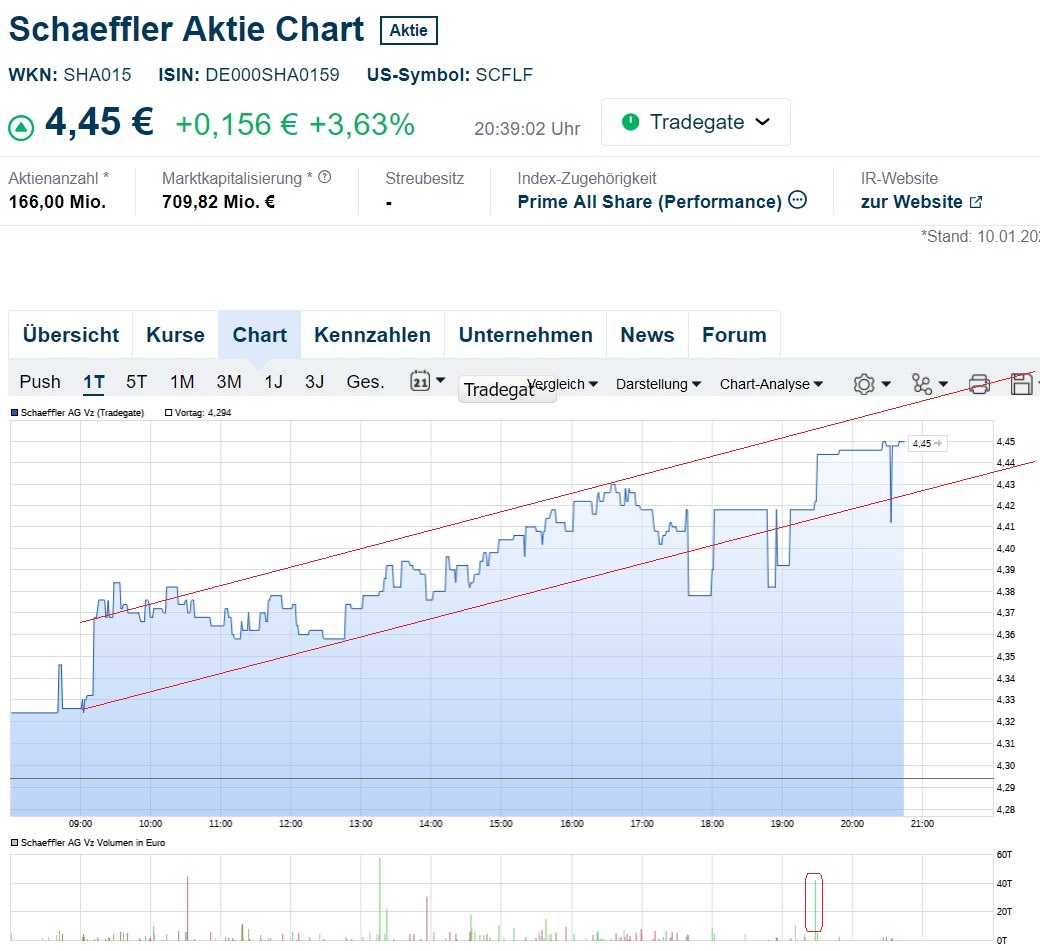 FF: Ob es wirklich schon am 1. Oktober zur Fusion kommt, die mit einer Umwandlung der bisherigen Schaeffler-Vorzugsaktien in Stammaktien einhergeht (gleichzeitig werden die Vitesco-Aktien im Verhältnis 1 zu 11,4 in neue Schaefflerstämme getauscht), bleibt somit offen. "In greifbare Nähe" suggeriert andererseits, dass die Fusion wohl Anfang Oktober vollzogen wird.