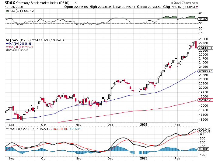 Ungeachtet dessen würde ich die aktuelle Divi-Rallye wohl noch weiter reiten, wenn nicht der DAX und die US-Indizes so katastrophal überkauft wären. Die schreien geradezu nach einer fetter Korrektur. Beim DAX sollte es zumindest einen Rücksetzer zur 50-Tage-Linie bei ca. 21.000 geben. Eine vernünftigere (nachhaltigere) Korrektur wäre ein Re-Test der 200-Tage-Linie bei aktuell 19.300.