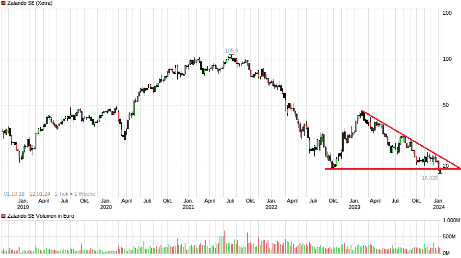 Ich habe Zalando letzte Woche für 19,40 € verkauft (-lieber ein Ende mit Schrecken, als ein Schrecken ohne Ende-) und werde den Kursverlauf aus den Augenwinkeln beobachten, schließe mich persönlich aber den Meinungen einiger Chatteilnehmer zu Zalando an dass wir noch Kurse Richtung bisherigem Allzeittief sehen werden. Allen investierten wünsche ich weiterhin viel Glück.
