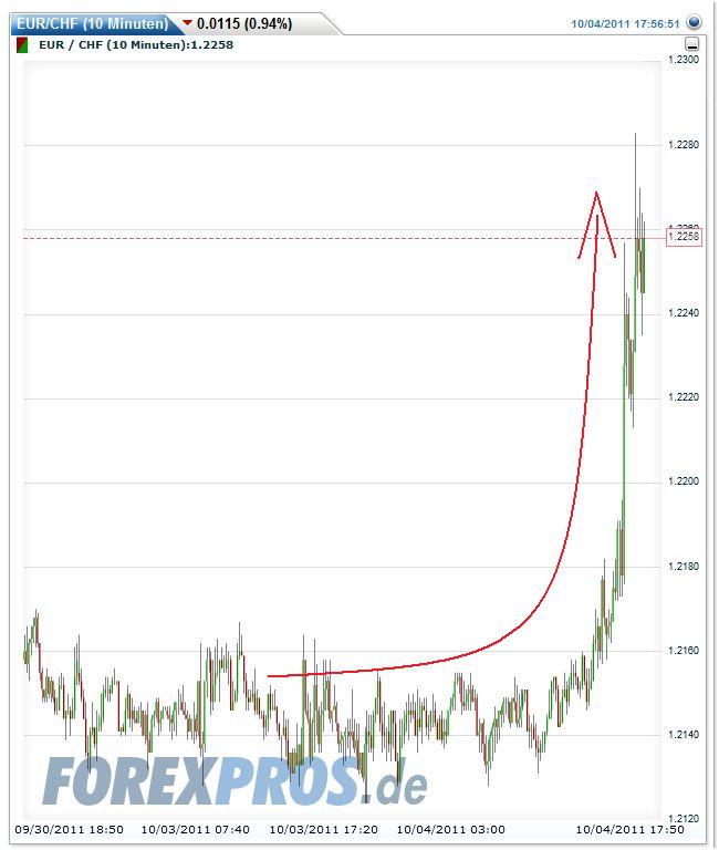 Da scheint entweder die SNB intervenistisch agiert zu haben oder es wird von größeren Marktteilnehmern mit einer baldigen kursbewegenden Entscheidung seitens der schweizer Politik/SNB gerechnet zu werden. Wenn einem bewußt ist, daß für die Schweizer ein Kurs von 1,20 immer noch zu sehr wirtschaftsbelastend ist und eigentlich eher 1,25 oder noch eher 1,30 das Mindestumtauschverhältnis sein müßte, dann kann man davon ausgehen es werden früher oder später weitere Schritte seitens der Schweiz erfolgen, um den eingeschlagenen Weg weiter fortzusetzten den Franken weiter zu schwächen und unattraktiver zu machen für Ausländer und Spekulaten.