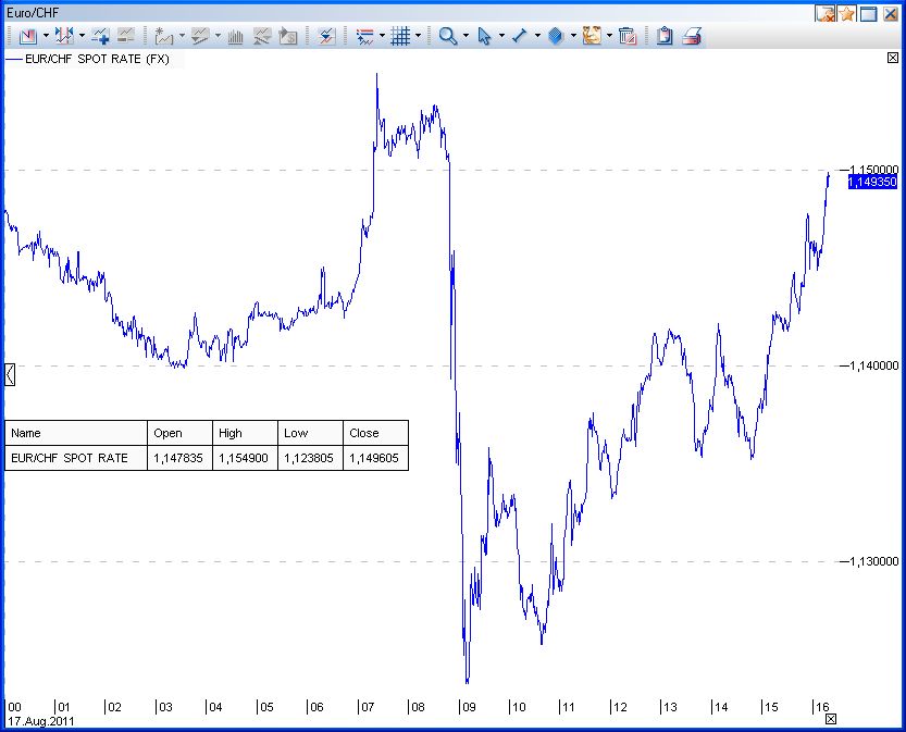 Schwankung innerhalb der letzten 3 Jahre minimal. KUCKS DU. Wenn die kleineren Währungen nicht gekopplet würden, hätten diese das gleiche Problem, wie CHF. Es geht um die größte Währung im betreffenden Wirtschaftsraum. Um mehr geht es nicht.
