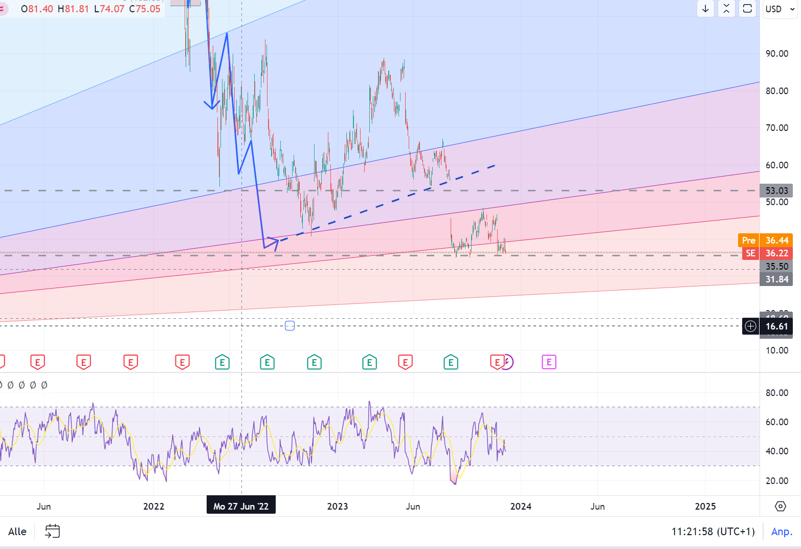 Adjusted EBITDA in Q3/23 nun +234 Mio. ggü. 240 Mio. in Q2/23. Aktive User 544 Mio. gleich-bleibende ggü. Vorquartal. Paying User von 43 auf 40,5 Mio. gefallen, Average booking per U-ser von 0,80 auf 0,82 USD minimal gestiegen.