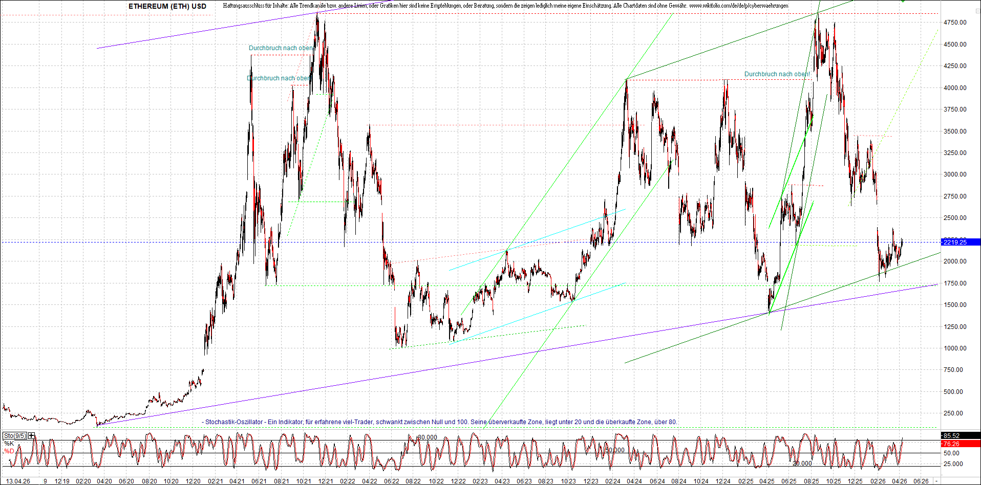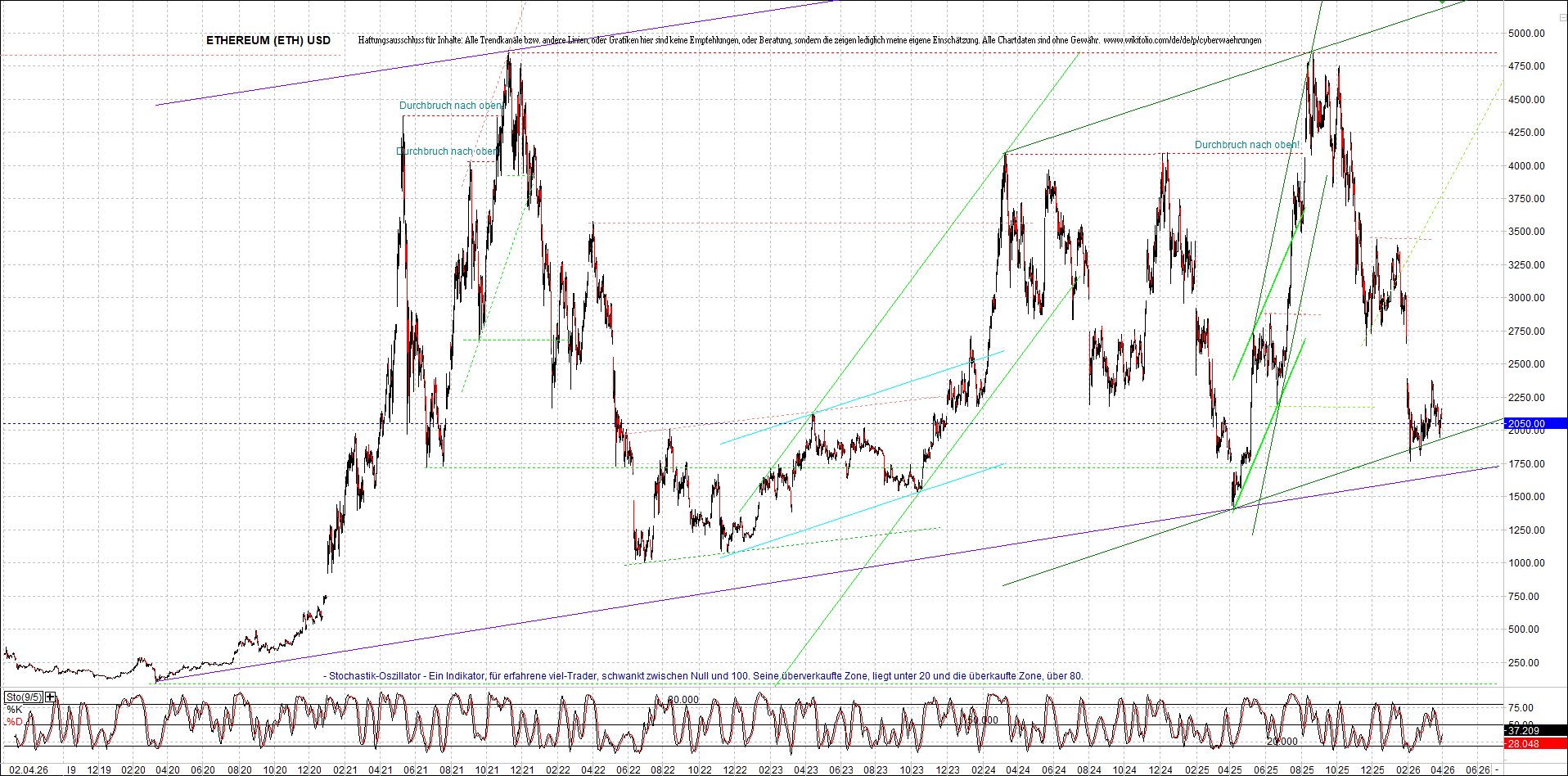ETHEREUM Chart am Abend, Oben Ethereumzertifikat.