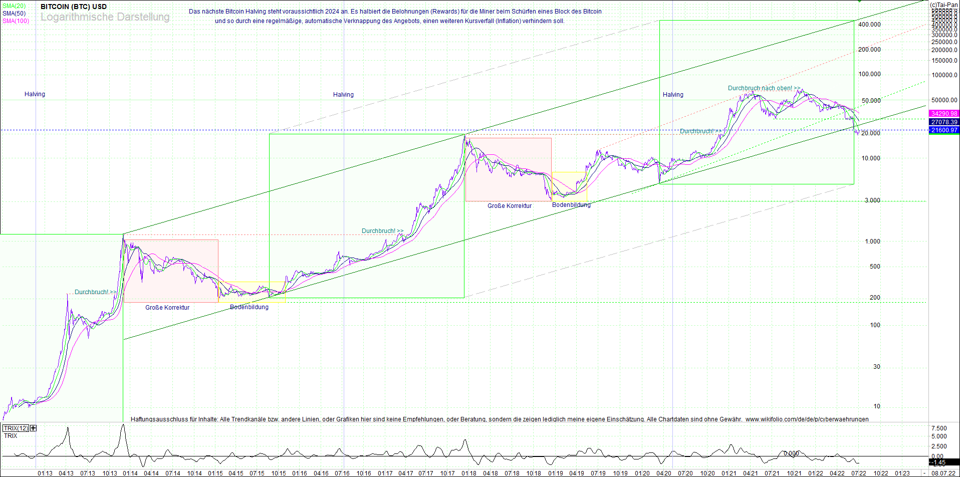 BITCOIN Chart am Abend, anbei Bitcoinzertifikat.